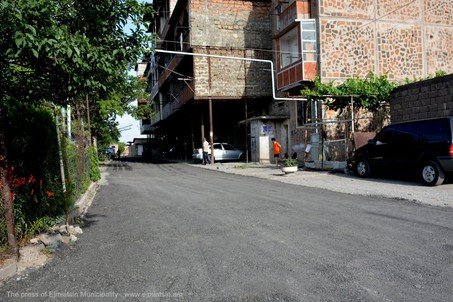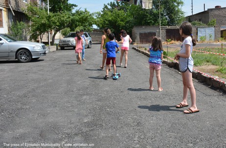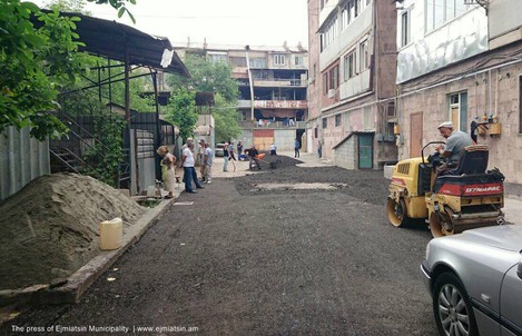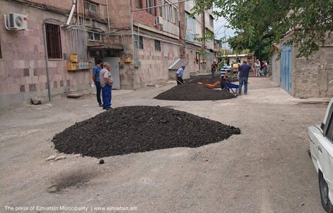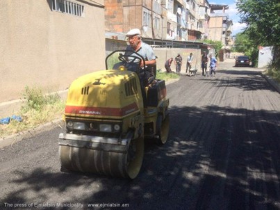 Էջմիածնի Չարենց թաղամասում տեւական ժամանակ է մեկնարկել են աղացած ասֆալտի շերտով բարեկարգման աշխատանքները: Հարթեցվում եւ բարեկարգվում են այն փողոցներն ու բակերը, որոնք տասնամյակներ շարունակ ոչ միայն չեն բարեկարգվել, այլեւ եղել են հողապատ եւ զրկված ասֆալտբետոնե շերտից: