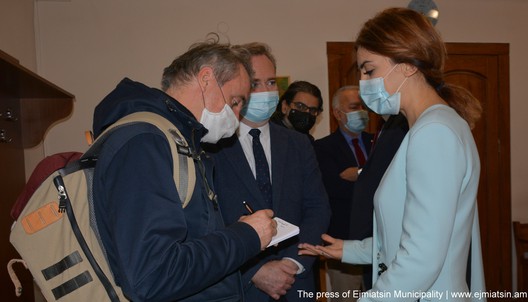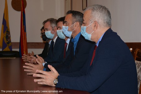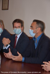 Քաղաքապետը պատվիրակության անդամներին ծանոթացրել է պատերազմի օրերին եւ հետպատերազմյան շրջանում քաղաքապետարանի ծավալած գործունեությանը, ներկայացրել Էջմիածնում ապաստանած արցախացիների աջակցությանն ուղղված քաղաքապետարանի իրականացրած ծրագրերը: