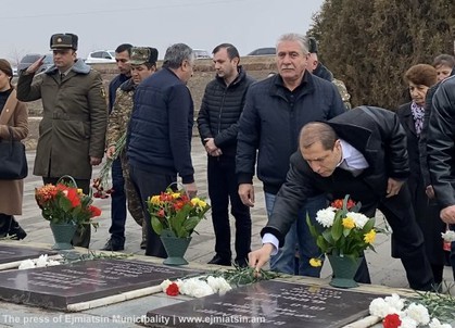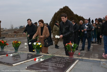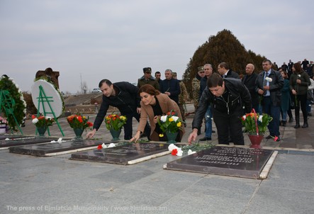 Բարի կամքի տեր մարդիկ ամբողջ աշխարհից մեր ժողովրդին օգնության էին շտապում: Ցավոք, Էջմիածին-Արմավիր ավտոճանապարհի մոտ աղետի ենթարկվեց մեզ օգնություն բերող սերբական օդանավը: Անձնակազմի բոլոր անդամները նահատակվեցին: Հենց աղետի վայրում, վթարված ինքնաթիռի բեկորներից երախտապար հայ ժողովուրդը հուշարձան կանգնեցրեց: Ահա այստեղ, այս հուշակոթողի մոտ, ամեն տարի Էջմիածնեցիները հարգում են զոհերի հիշատակը: Էջմիածնի քաղաապետարանը և քաղաքի ակտիվը` քաղաքապետ Դիանա Գասպարյանի գլխավորությամբ ծաղիկներ ու ծաղկեպսակներ խոնարհեցին սերբ օդաչուների հիշատակը հավերժացնող հուշակոթողին` հարգանքի տուրք մատուցելով եւ´ Սպիտակի երկրաշարժի զոհերի, եւ´ սերբ օդաչուների հիշատակին: