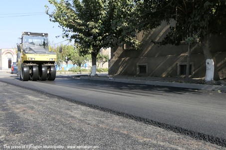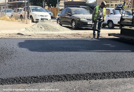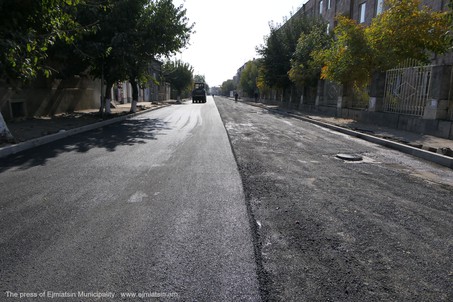 Երեկ վաղ առավոտից մինչ ուշ երեկո փողոցի ողջ երկայնքով կատարվել են փոշեզրկման, բիտումապատման եւ ասֆալտի առաջին շերտով հարթեցման աշխատանքները: