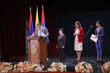 Կոմիտասի անվան մշակույթի պալատում վաղ առավոտից դիմավորում էին հյուրերին՝ հանրապետության տարբեր քաղաքներից եւ քույր քաղաքներից: Էջմիածնեցիներին շնորհավորելու էին եկել ՀՀ վարչապետ Նիկոլ Փաշինյանը, Տարածքային կառավարման եւ ենթակառուցվածքների նախարար Սուրեն Պապիկյանը, պատգամավոերներ եւ դիվանագիտական կորպուսի ներկայացուցիչներ: Տոնը մեկնարկեց հանդիսավոր նիստով: