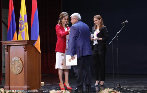 Պատվավոր քաղաքացի կոչմանն արժանացան՝ Ֆիզիկայի վաստակավոր ուսուցիչ Արծրունի Հարությունյանը եւ Էջմիածին ԲԿ-ի բազմամյա աշխատակից, անասթեզիոլոգ Մելիքսեթ Կոնդյանը: